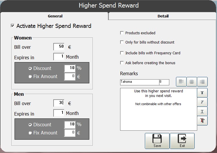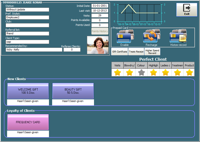 Create intelligent Treats Receipt as services performed by the client, print a Treats Recepit with the promise service that you want to gift or service at a special rato for the next visit.