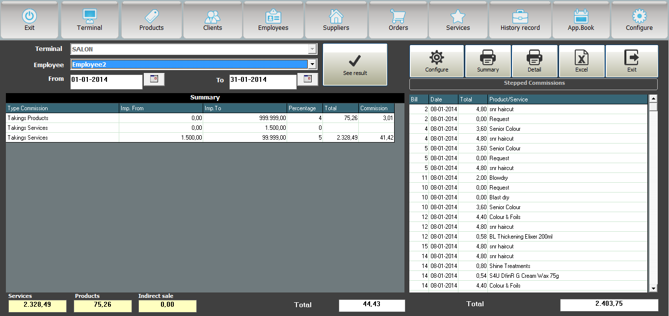 Ask for as many reports as you need, sales, employees, commissions, balance, incomes, transactions…
