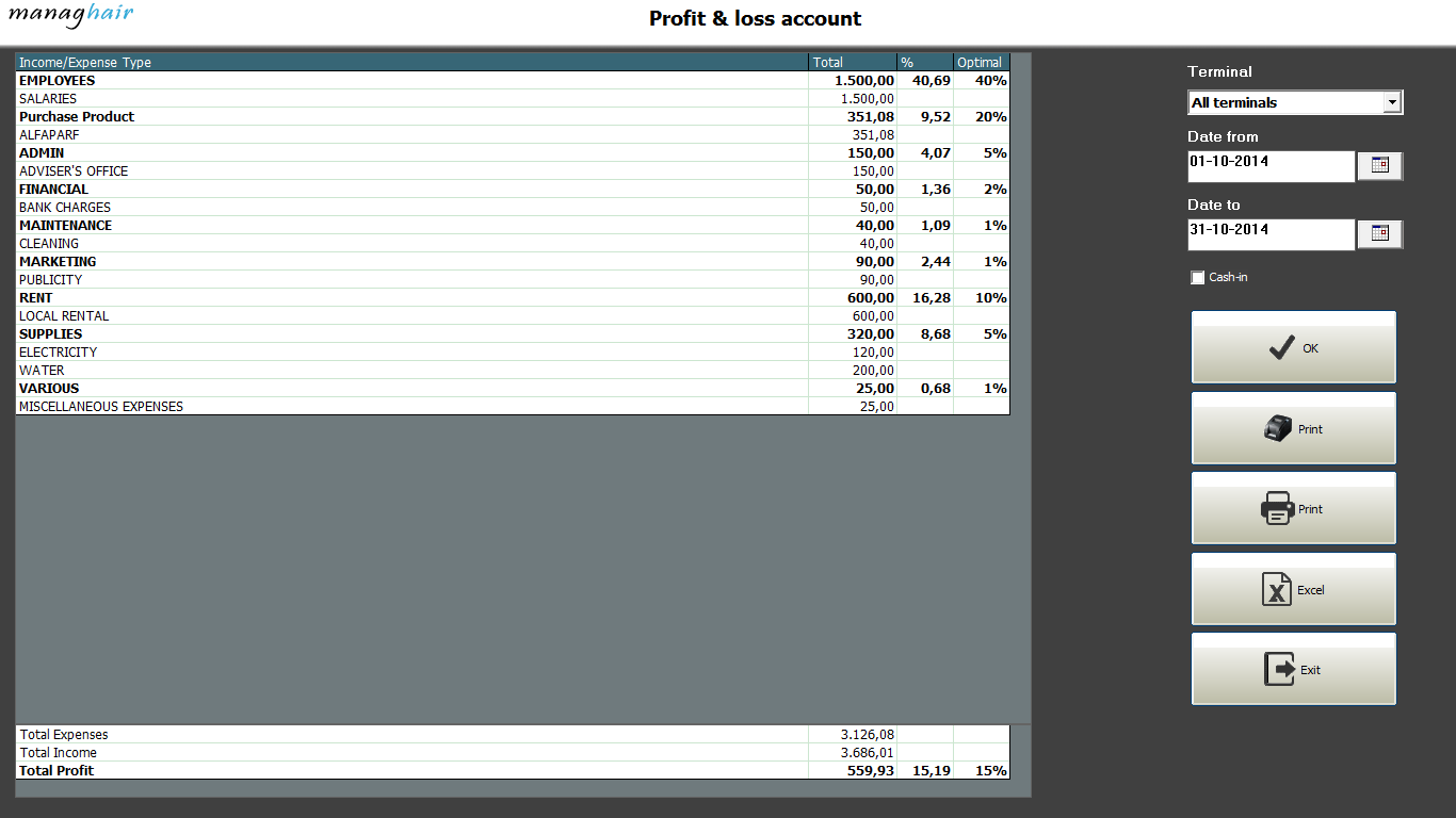 You will know exactly where your money goes, each section on the statement account has an optimal percentage indicator to be compared with your results, this way you may know which part of your business needs to be optimized.