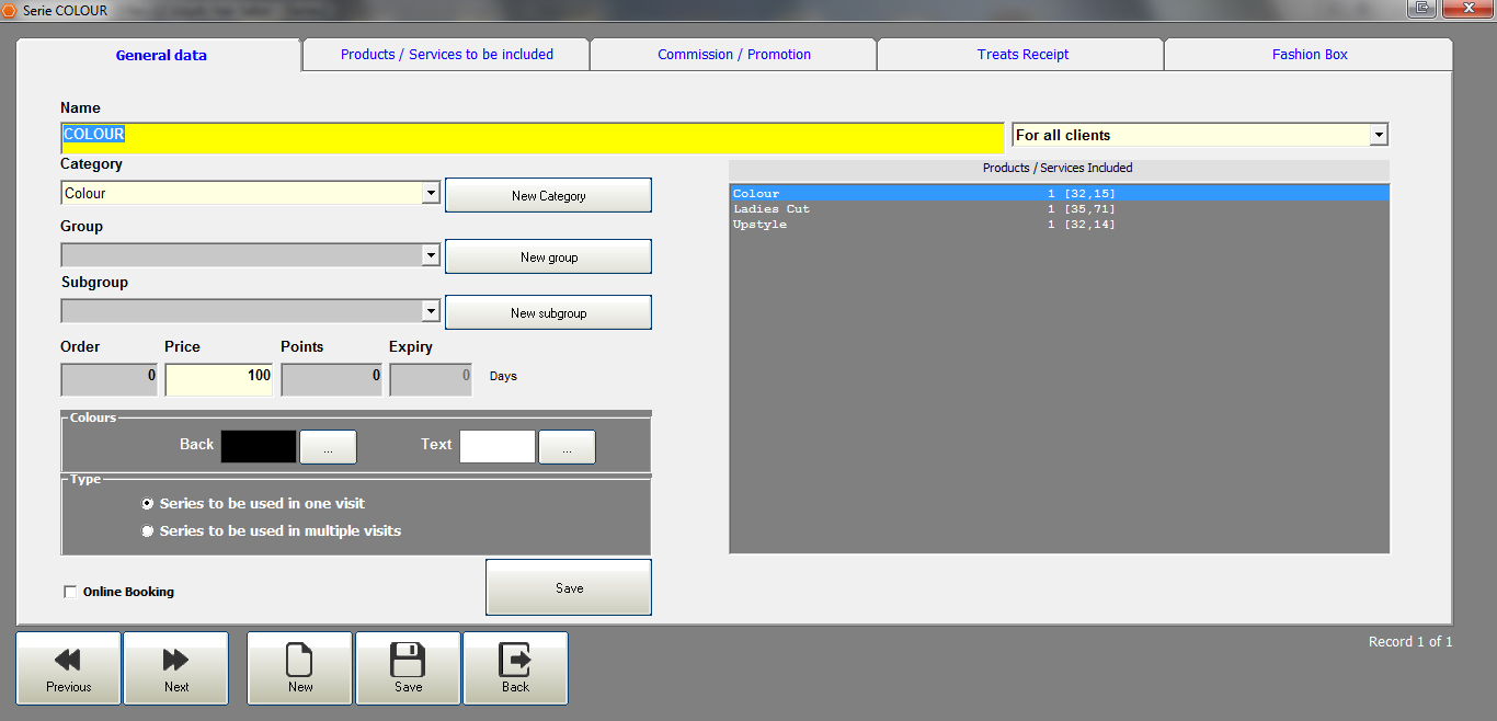 Series allow for services and/or products combinations. Offer new services to your clients at a special price.