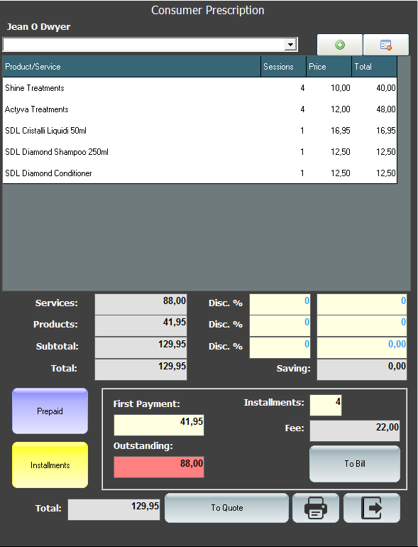 A consumer prescription can be paid in advance or in installments. Managhair will indicate you the number of recommended installments and if you should ask for an initial payment.