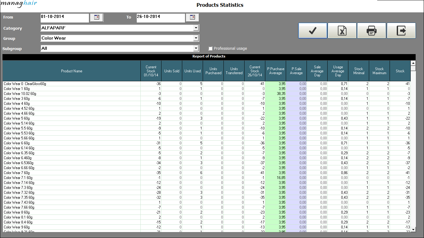 See products in/out, units purchased and sold, units used in the salon or transferred to another salon, all in a period of time.