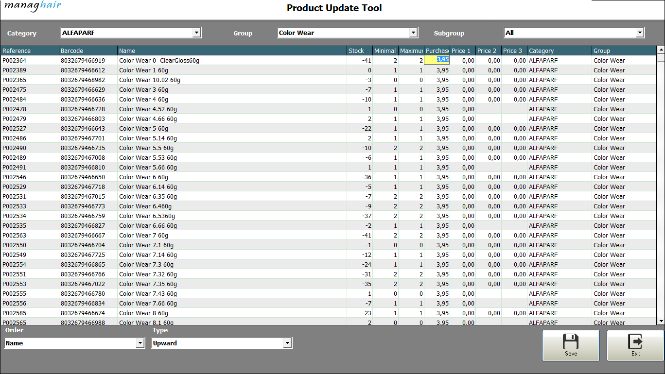 Take control of your stock efficiently, products used in the salon, manual and automatic orders, see all the history.